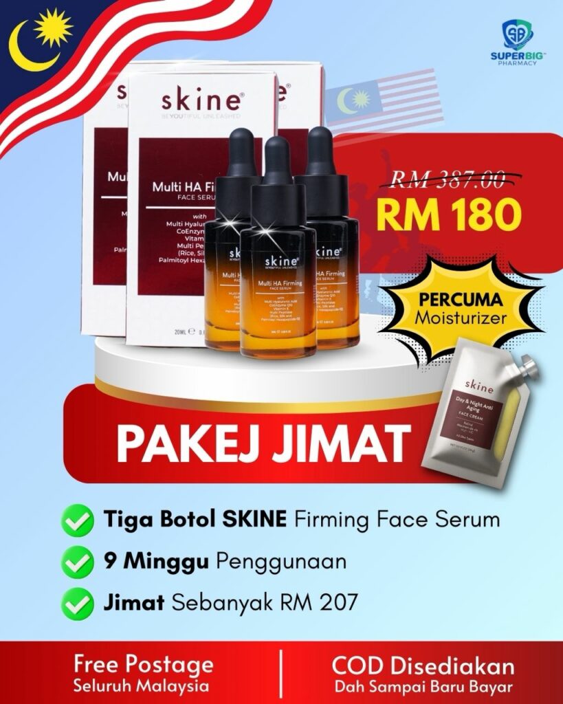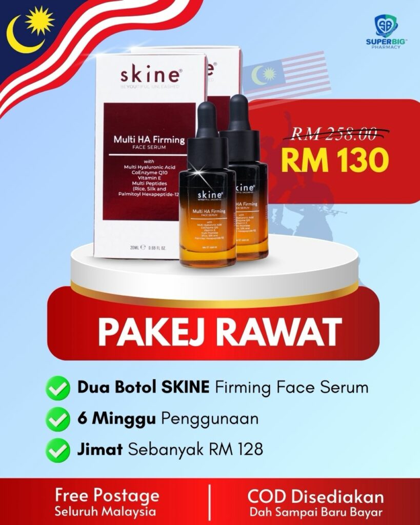 Nak kulit cerah, tegang dan berseri semula? Serum SKINE jawabannya.